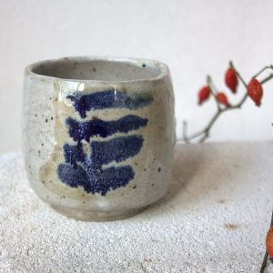 The cup is made of white stoneware and hand-painted with different glazes, which makes a special effect. Earthy colors and organic shape will deepen your ritual of drinking tea or coffee. The piece is unique and on of a kind.